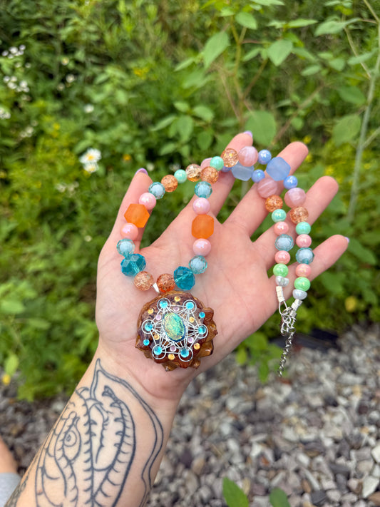 The Monarch Moon Beaded Pinecone Necklace 25-27”