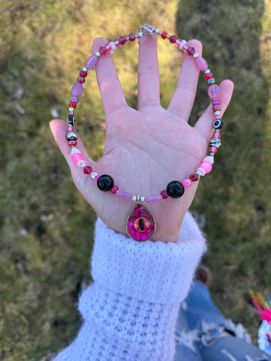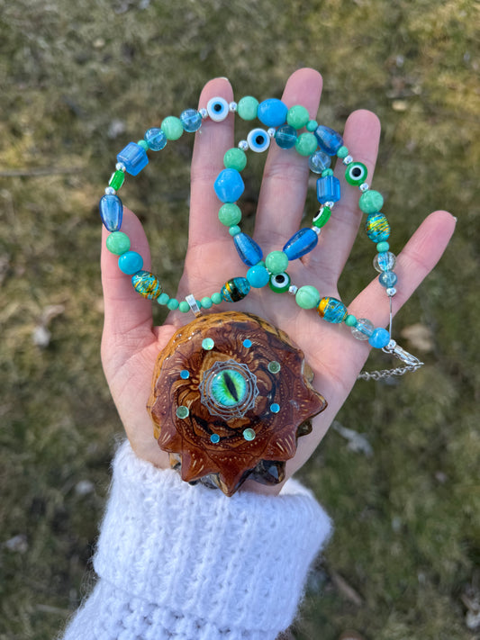 All jewelry items have either adjustable slipknots or chains and clasps for easy length adjustment. Pinecones are sealed in thick resin, and come with extra cotton cording. A collection of handmade necklaces, chokers, and other accessories. Please reach each item description carefully for sizing and care instructions.