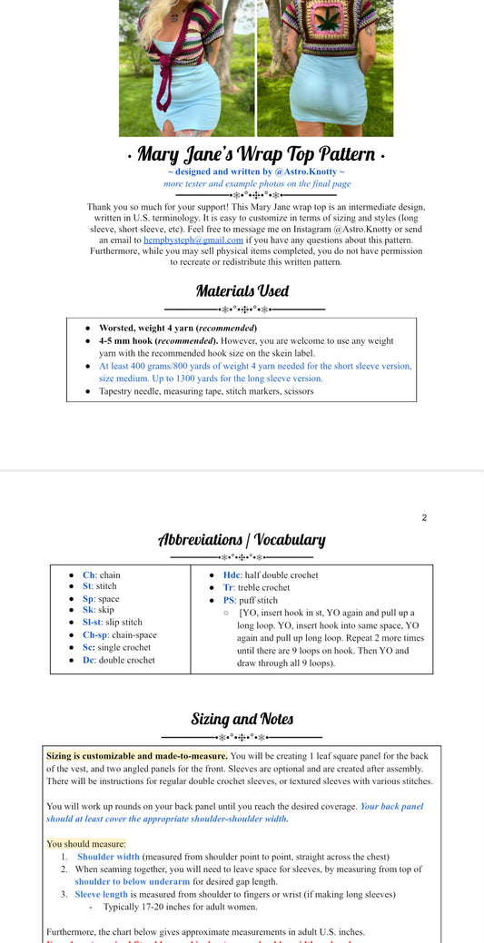 The following patterns are digital downloads only, and will come in PDF formats. Some files will be with and without photos for easy printing. Downloads will be ready instantly after purchase via email, so please make sure you enter your current email at checkout. It is recommended you download files on a desktop device. If you have any difficulties accessing patterns, email me directly at hempbysteph@gmail.com.