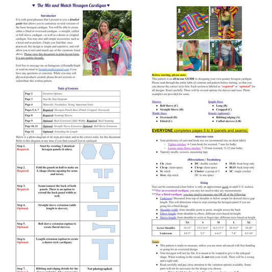 The Mix and Match Hexagon Cardigan - All-in-One Pattern (Oversized, Cropped, Bell Sleeve, Accessories)