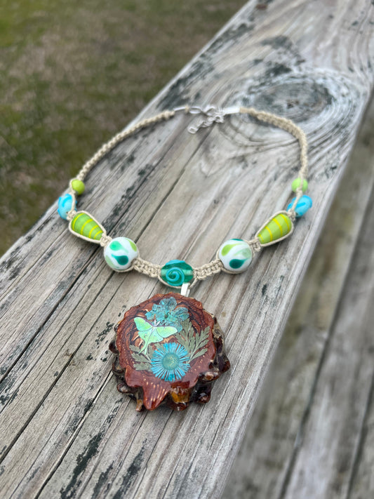 Luna Moth Pinecone Necklace - Hemp Necklace 17-20 inches