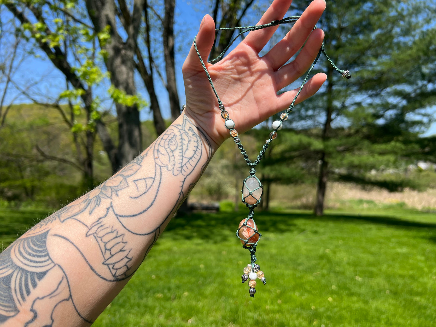 Handmade macrame necklace with stone - adjustable in length to fit any size head, and can be worn as choker as well with slip knot.