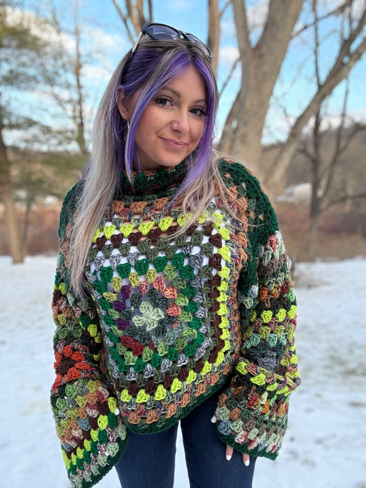 XS-M Turtleneck Scrappy Sweater Oversized Sleeves